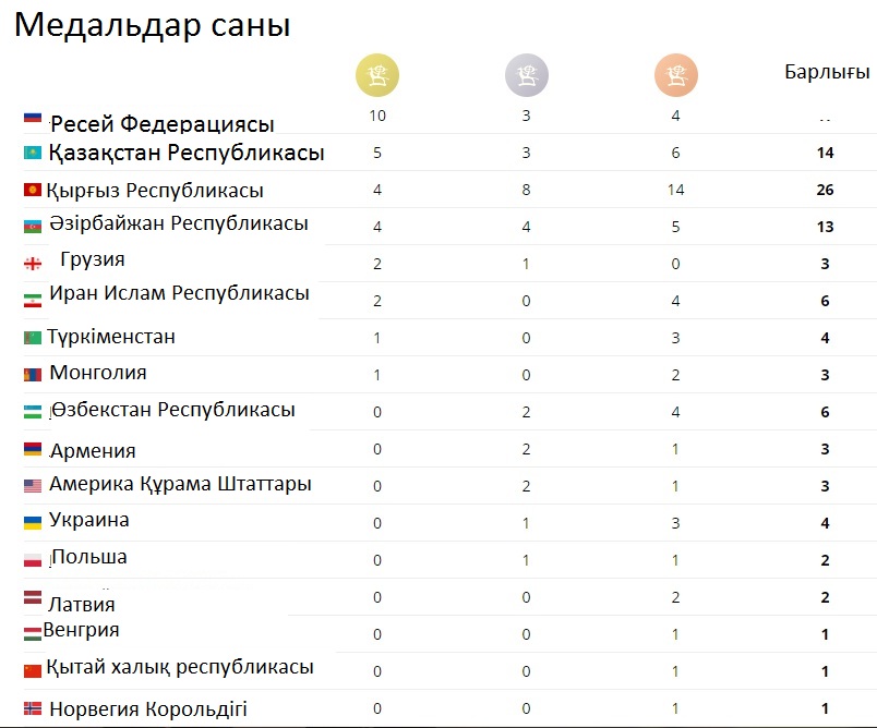 Бүгін Қырғызстанның Ыстық көл жағалауындағы  Чолпан Ата қаласында өткен ІІ Дүниежүзілік көшпенділер ойынының жабылу салтанаты Бішкекте болмақ.  Жаһандық жарысқа 58-ден астам елдің 600 жүзге тарта спортшысы қатысуда. Олар 25 спорт түрінен бақ сынайды. Халықаралық іргелі шара туралы жаһанның 35 елінен көптеген белгілі ақпарат құралдары хабар таратуда. Дүбірлі додада Қазақстанның намысын 75 спортшы қорғады. Жалпы есеп бойынша, Қазақстан командасы бұл ойында – 5 алтын, 3 күміс, 6 қола медальмен екінші орынға тұрақтады. Бірінші орын, 17 медальмен Ресей Федерациясына бұйырса, Қырғыздар үшінші орынды қанағат тұтқан.