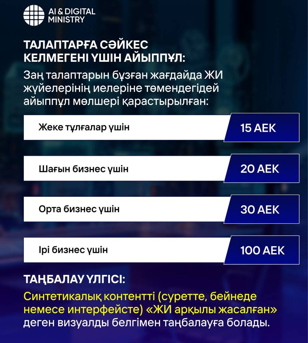 Министрлік ЖИ жүйесі иелеріне төмендегі айыппұлды қарастырған: