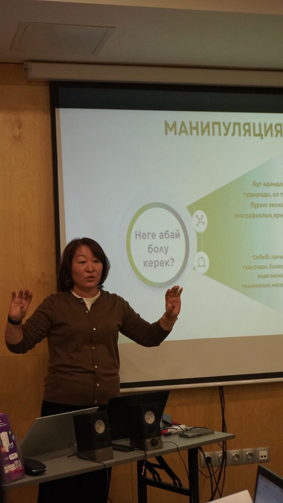 Есенгүл Кәпқызының дәрісінде қатысушылар медиаларда кең тараған телекоммуникация тақырыбында жарияланған мақалаларды талдаса, тренер Баубек Сағындықтың дәрісінде визуал ақпарат бойынша сақталмайтын этика мәселелері талқыланды. Баубек Сағындықтың сөзінше, жариялаған материалыңызға пайдаланған суретіңіздің этикалық мәселесіне сақ болып, дереккөзі мен сілтемесі көрсетілуі керек.