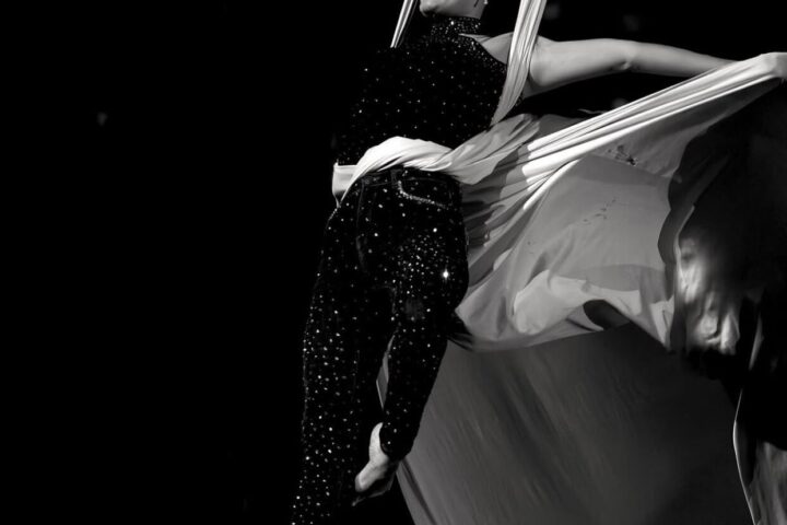 «Әуе акробаты боламын» Залдың іші қара көлеңке.  Әуеде баяу тербеліп тұрған гимнаст қыздың үстіне  жарық  түсіп тұр. Ол — адамдар даусы жетпейтін, тыныс баяулайтын, жүрек дүрсілі ғана естілетін кеңістікте шеңбер айналып жүр.